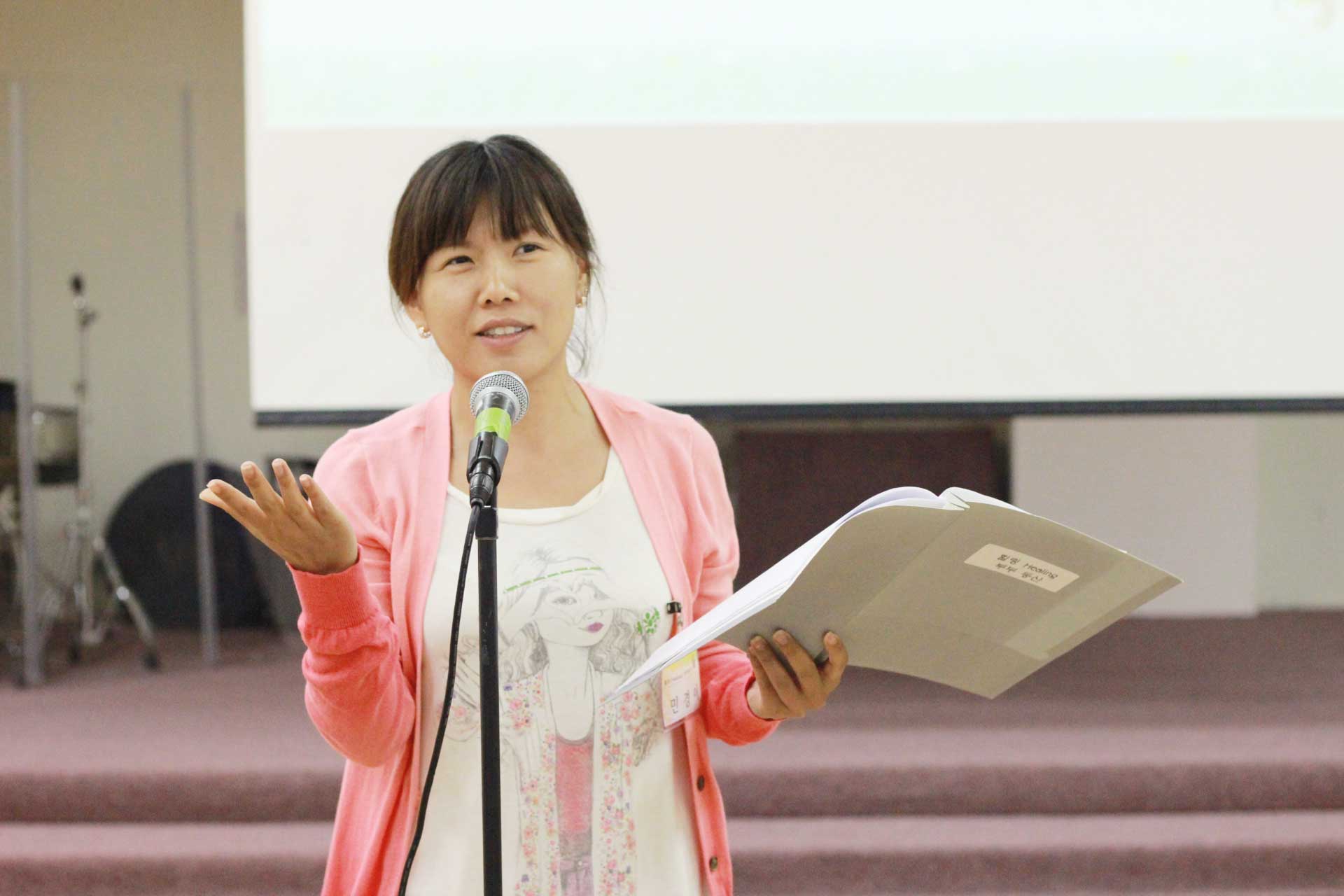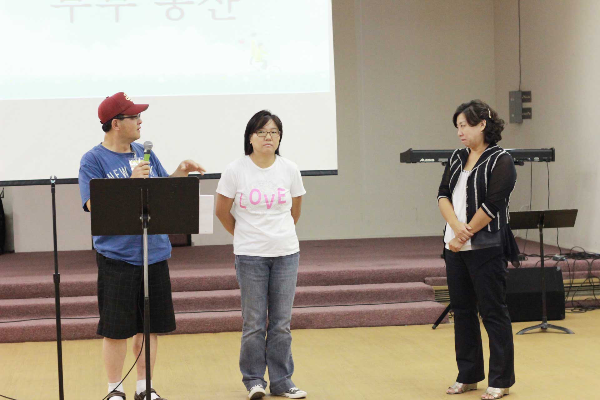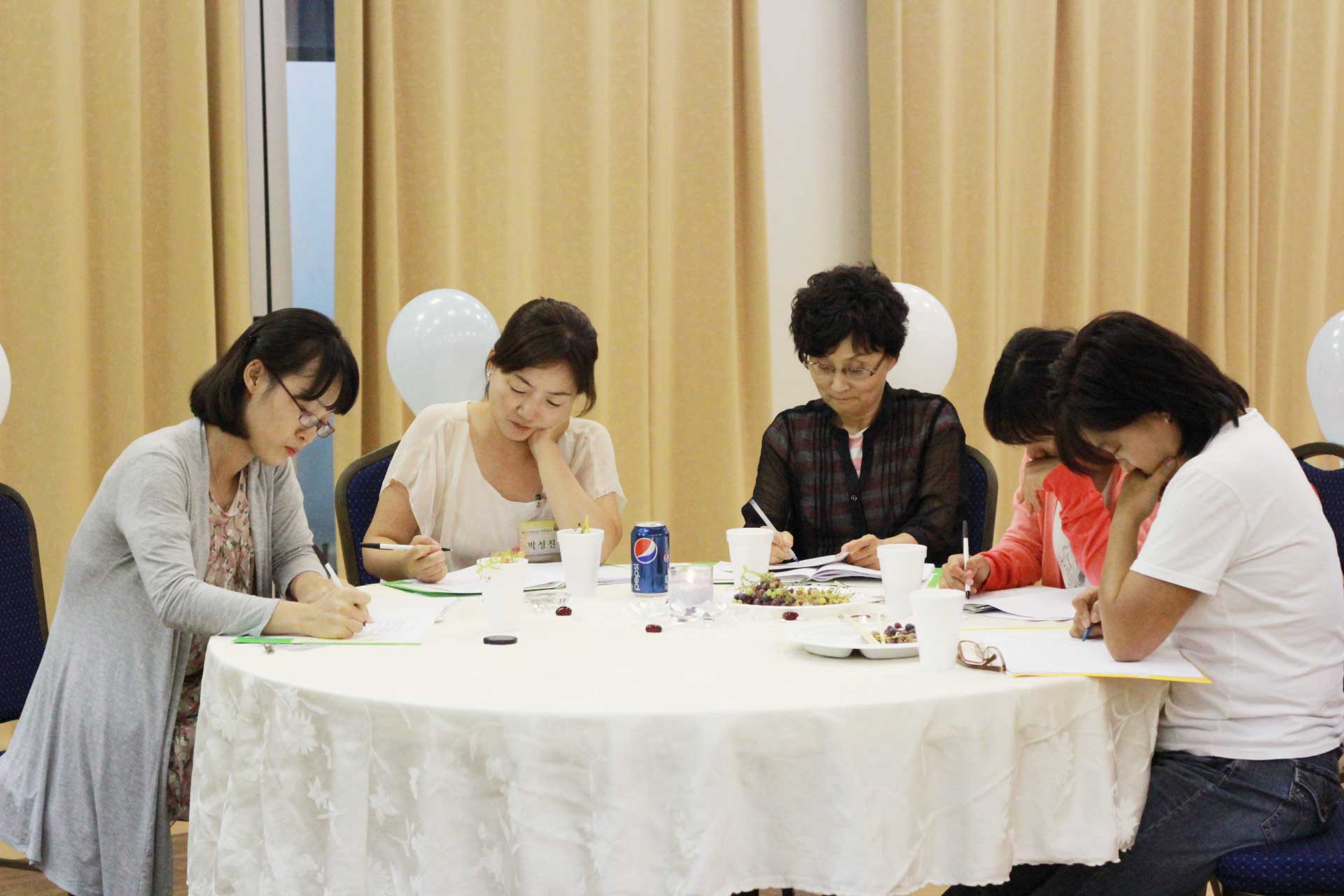 저번주에 내주신 숙제 [배우자의 사랑스러운 점 20가지] 를 발표하는 모습들입니다.