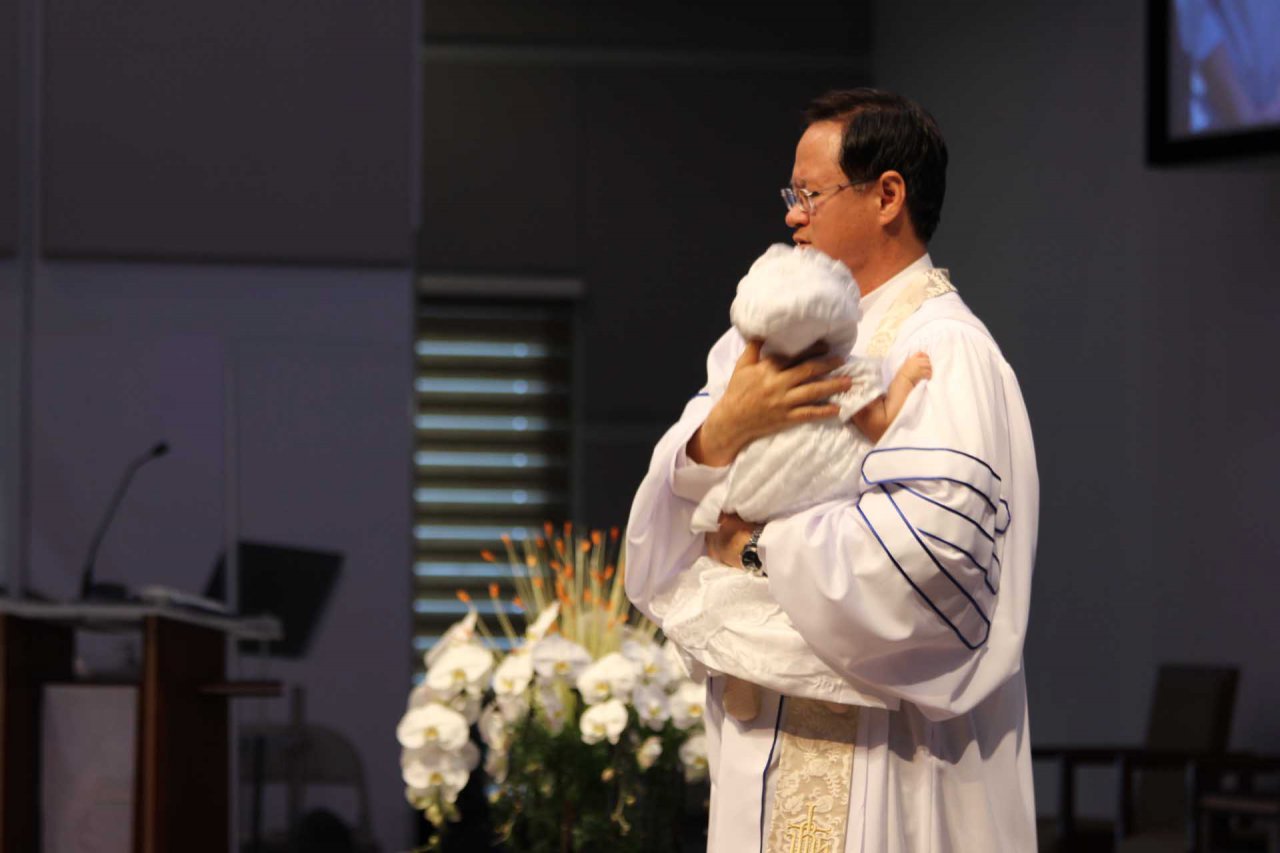 태어난지 얼마 안 된 아기에게 축복의 기도의 시간을 가졌습니다.