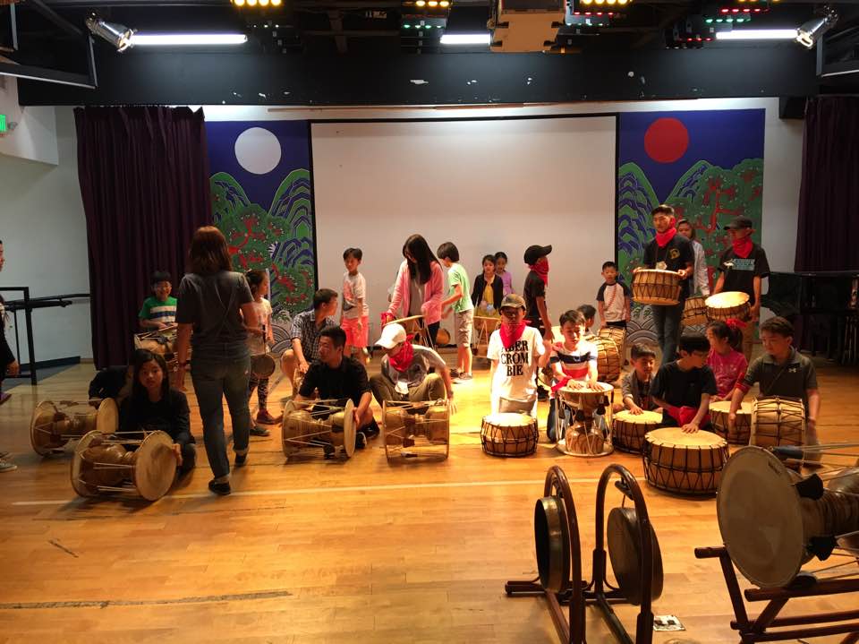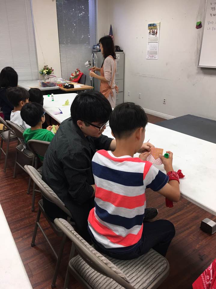 한국교육원에서 전문강사에게서 사물놀이, 종이접기 등을 배우는 시간과